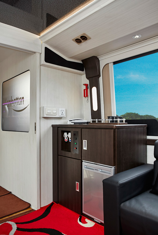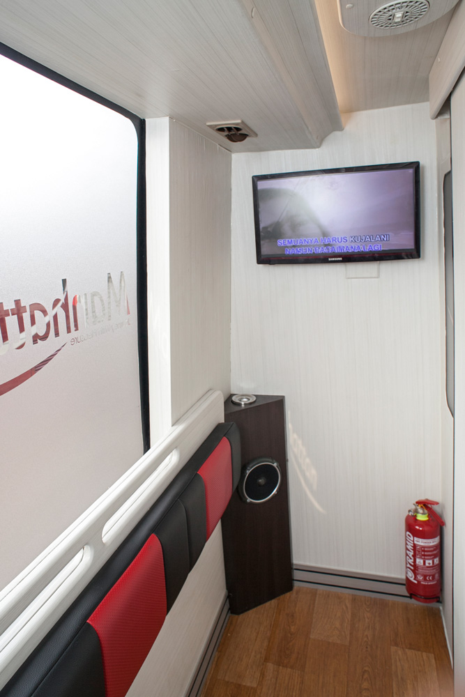 - Safety Feature : Sabuk pengaman, Palu pemecah kaca & Tabung pemadam kebakaran, Pintu darurat