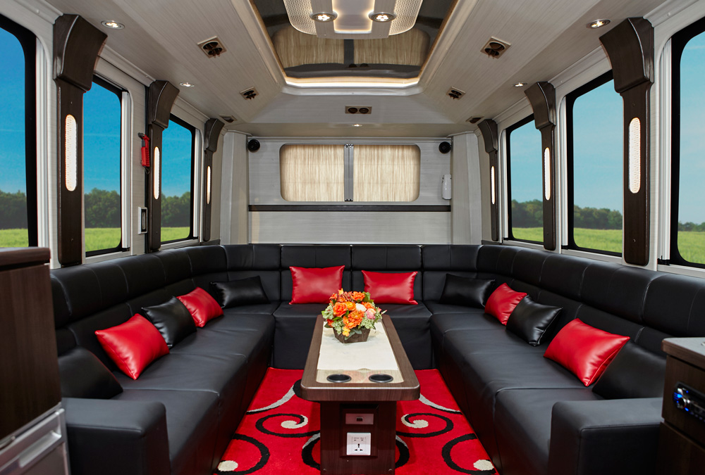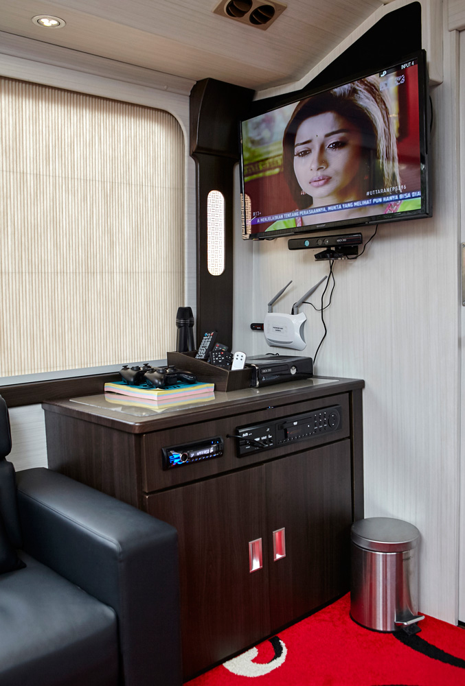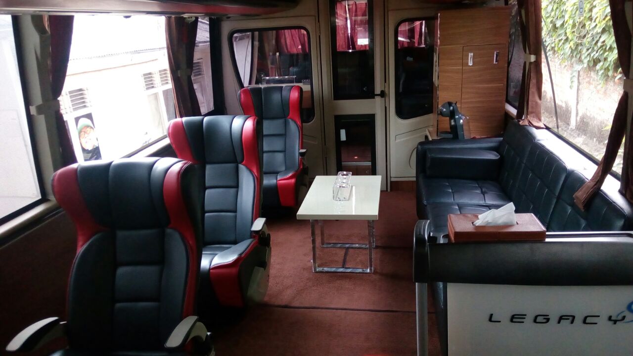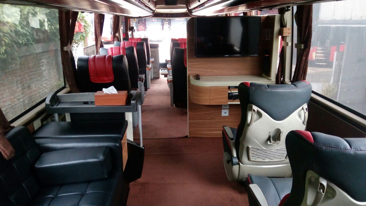 - Interior tipe bigbus premium, kapasitas 13 Seats + 5 Sofa = 18 Orang