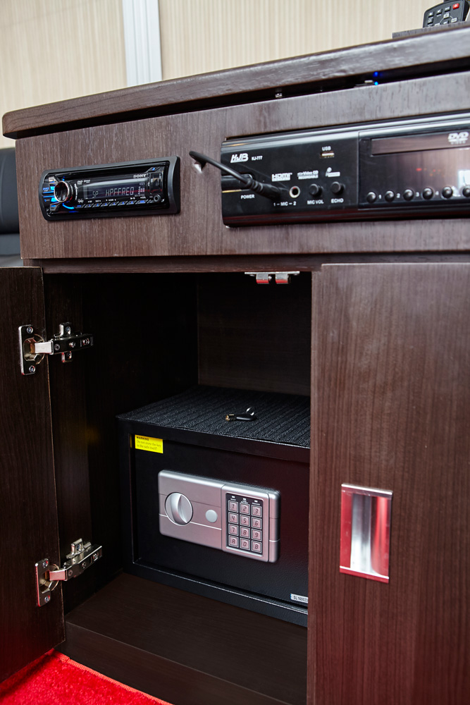 - Dengan fasilitas : AC, Audio, LCD TV, WiFi, Movie Karaoke 1 Unit, Electricity, Kulkas Mini, Brands Coffee, Dispenser, Smoking Room & Toilet